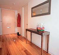 АнтреИменно в коридора най-често е мястото на големи огледални места, с нея и да започнем. Обикновено огледало се поставят вляво или вдясно от входа, но не и срещу него. С помощта на визуално разширяват тесен коридор. За това една от стените може да се направи напълно огледално, в ролята на "стена" може да излезе на фасадата вграден шкаф или стенно платно с отваря "створкой" - врата в стаята. И функционално И красиво. Такова огледало създава приятна илюзията за огромно пространство.