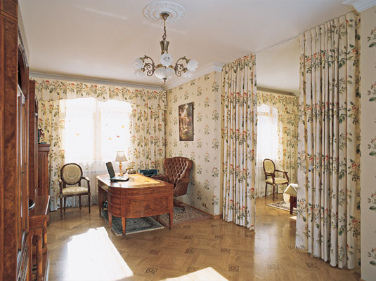Между другото, съвременните производители предлагат пръчки, пръти и подемни механизми, които правят възможно пускането на дома си представи театрална завеса, но веднага предупреждават потенциалните купувачи: закупуване на този дизайн може да доведе до главоболие. Първо, трябва да се'да разберете способни ли са вашите стени издържи подобна тежест, на второ място, трябва предварително да помислите как завесата ще изглежда в сглобени състояние.