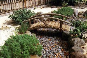 Появата на крак в нашите градини се дължи на първо място не само наличието на водни басейни или потоци, въпреки че първоначално тези сгради са служили за пренасяне през водни препятствия. Мост, въз основа на заповеди на японската философия, има способността да балансират енергията в проблемни места и внасят хармония в пространството градина. За да се симулира настроение, това е важно правото на избор на място за строеж на мост. Ако да го организира под сянката на една сенчеста дърво, е в състояние да създаде интимна атмосфера. Мост на открито пространство ще помогне трезво да оцени житейски ситуации и изграждане на планове за бъдещето. И съвсем не'задължително го сложи върху това езерце - много популярни в днешно време пасарелки, переброшенные през "суха" поток, при които, например, скрити дренажни съоръжения. За осигуряване на хармонично съжителство на човека с космоса и природата, японците предпочитат да правят градински мостове извити, леко повдигнато над водата. Що се отнася до материал за производството им, това може да е дърво, камък или метал. В последните години в Сибир се радват на огромна популярност деликатно подправени пасарелки, които придават на цялата градина, романтичен образ. А формата на мост трябва да отговарят на общия стил на градината. Така, в имението строг класически стил незаменим ще се окаже кам'каменен мост без парапети. А ако градината е природен пейзаж, мост може да се направи от дърво. Лек и въздушен, той хармонично ще подкрепи атмосфера на живата природа. Въпреки това, за осъществяване на мост могат да се използват и други по-екзотични материали: от бамбук, тръстика.