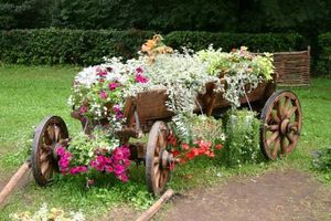 Материалите, които се използват за производство на вазонов - много: глина, керамика, бетон, кам'ян бележчица, пластмаса, дърво, метал. Творчески настроените собственици на градината могат да се пригодят за тези цели всичко, което по-рано е била използвана в земеделието: един стар аквариум, клетка за попугайчиков, кофи, градински количка и дори парче от метална тръба. Най-важното, не се срамувайте да покаже въображение! И се възползвате от съветите на специалистите: